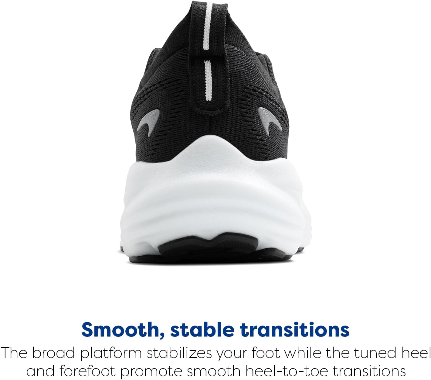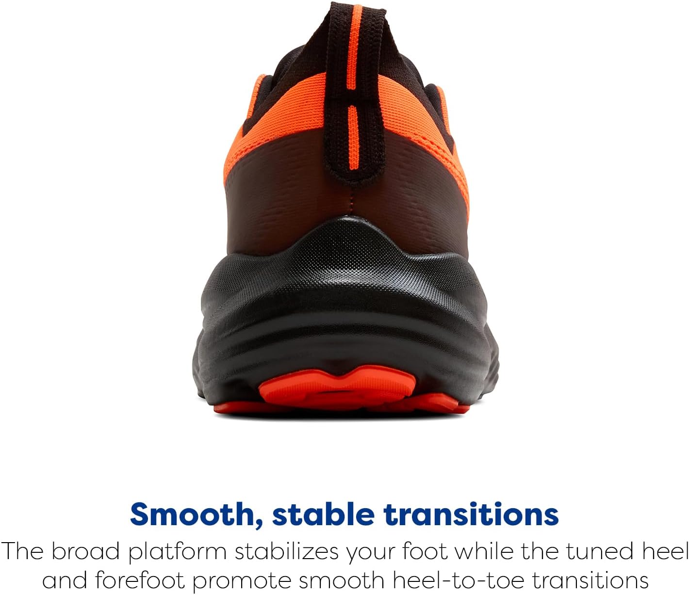 - SMOOTH, STABLE TRANSITIONS: The broad platform stabilizes your foot while the tuned heel and forefoot smooth heel-to-toe transitions.