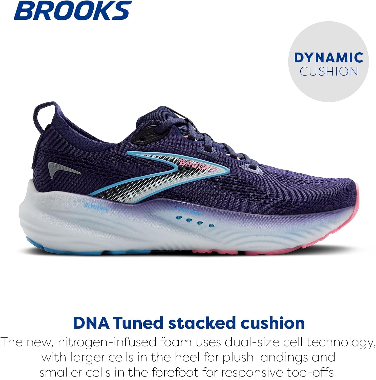 - DNA TUNED CUSHION: Cutting-edge cushion technology with larger cells in the heel to provide soft, plush landings, while smaller cells in the forefoot invite responsive toe-offs.